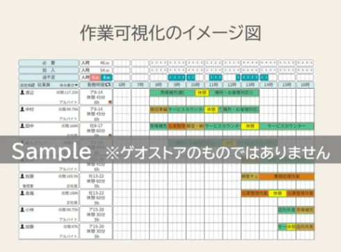 従業員ごとに作業スキル、販売スキルの設定を行うことで、適切な人員配置ができ、特定のシフトを均等に割り当てる機能によって、従業員の不満が解消されます。