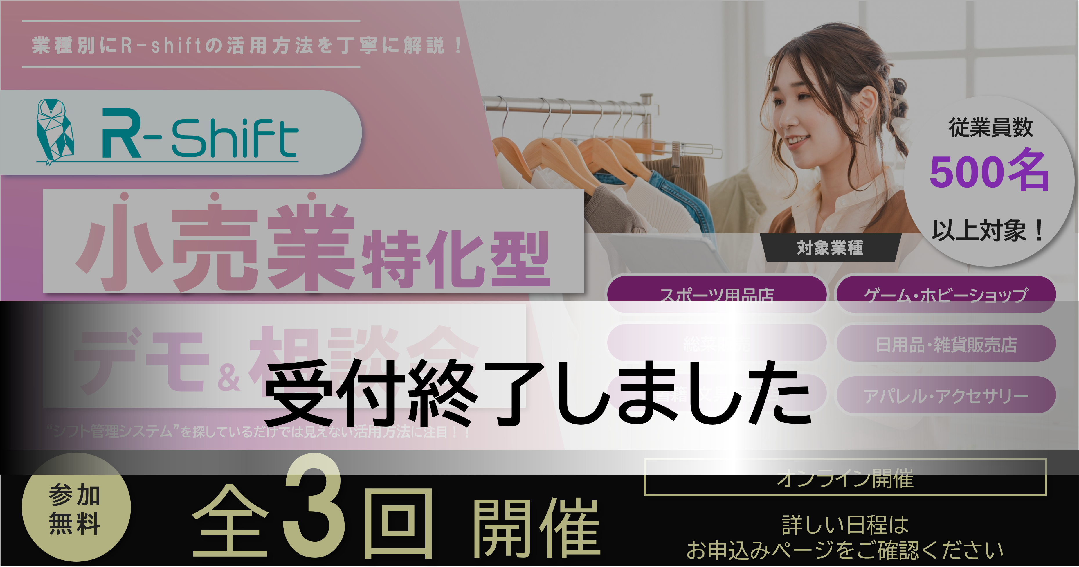 アールシフトをご利用いただけます。