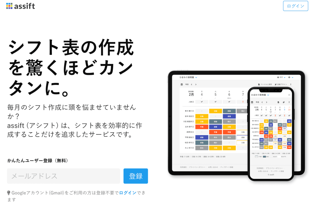 assiftは10名まで無料で使える勤務表作成のブラウザアプリです。