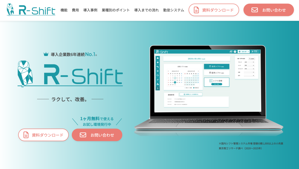 R-Shiftは、1か月間無料でお試しできます。